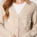 CROCHET EMBELLISHED FLOWER CARDIGAN IN STONE