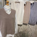 This seasons must have item is our Italian knitted tank top, made from the softest viscose mix fabric, knitted in a seamless design. This sleeveless knit has a V-neckline, ribbed edge detail and small side split on the hem.