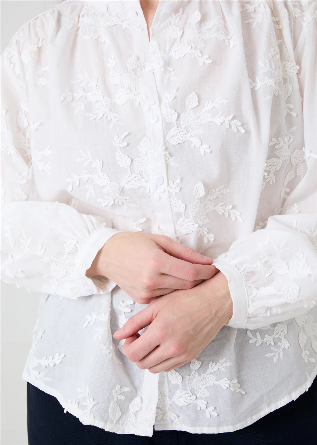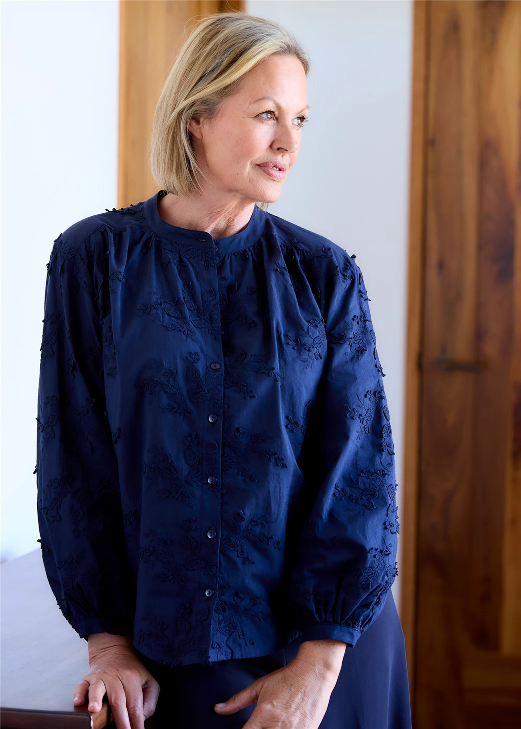 Delicate and feminine, our floral applique button through blouse features intricate floral appliques that add texture and elegance to a classic button-through design. Crafted from lightweight fabric with a flattering silhouette, it’s perfect for dressing up with tailored trousers or adding charm to your casual wardrobe.