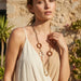 Long animal print cord necklace with gold and tan raffia loops.