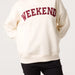 An ultra soft cotton sweatshirt with an applique 'WEEKEND' motif.