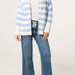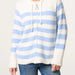 A soft knitted jacket with a bold blue & white stripe with a zip front and hood.